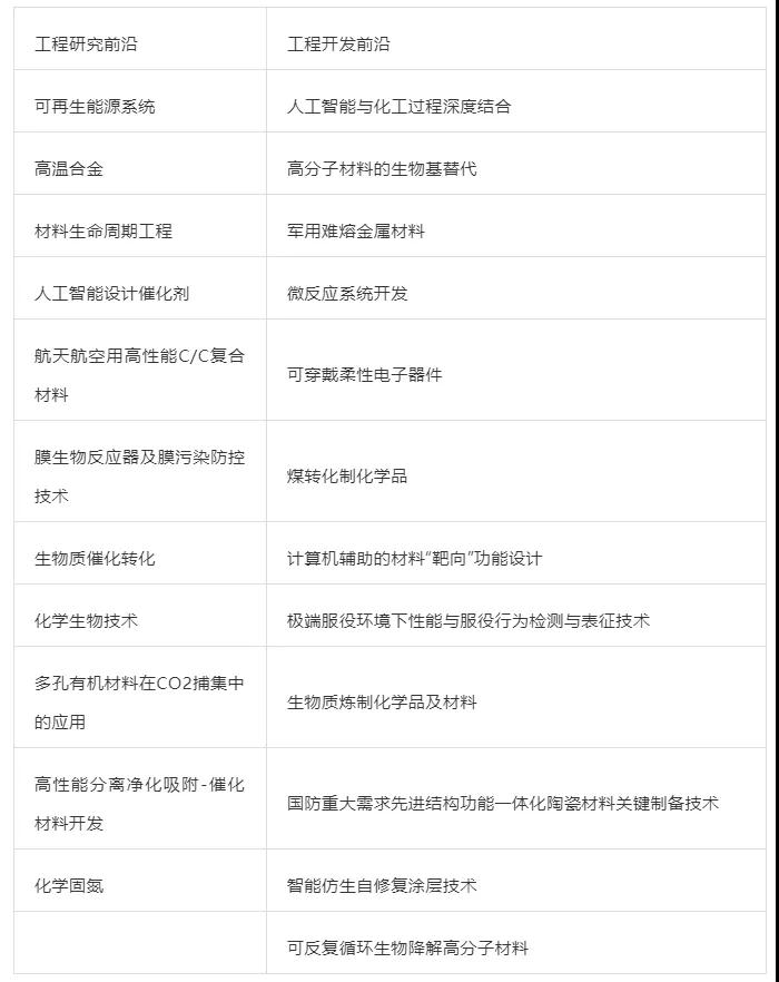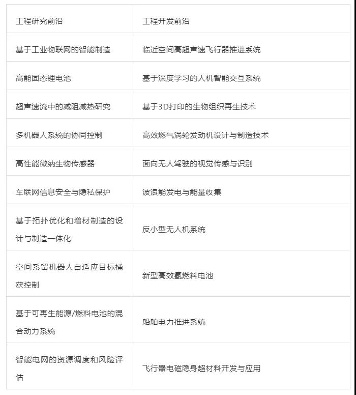 報(bào)告圍繞機(jī)械與運(yùn)載工程、信息與電子工程、化工冶金與材料工程、能源與礦業(yè)工程、土木水利與建筑工程、環(huán)境與輕紡工程、農(nóng)業(yè)、醫(yī)藥衛(wèi)生、工程管理9個(gè)領(lǐng)域,遴選出年度全球工程研究前沿93項(xiàng)和全球工程開(kāi)發(fā)前沿94項(xiàng)。