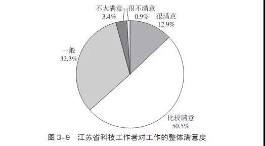 對(duì)于自己的工作,調(diào)查顯示,63.4% 的江蘇省科技工作者對(duì)當(dāng)前工作表示滿意。其中,12.9% 的科技工作者表示很滿意,50.5% 的科技工作者表示比較滿意。