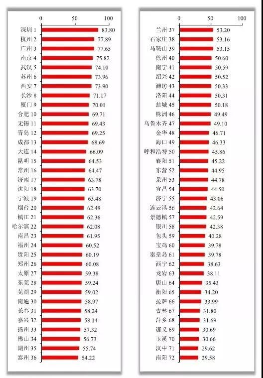 記者了解到,由于數(shù)據(jù)可獲得性問題,78個創(chuàng)新型城市(區(qū))中的4個直轄市的城區(qū)和2個縣級市并不包含在評價范圍內(nèi)。