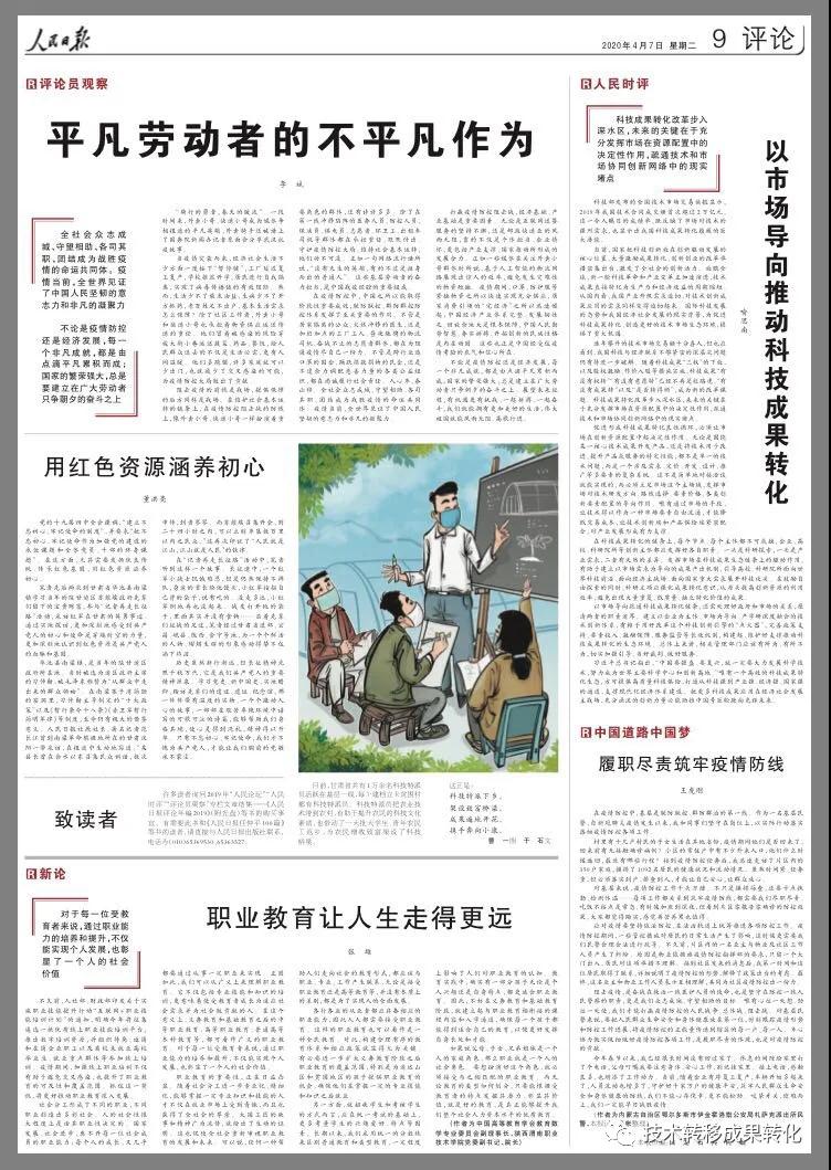 人民日?qǐng)?bào)4月7日第9版評(píng)論版發(fā)表文章《以市場(chǎng)導(dǎo)向推動(dòng)科技成果轉(zhuǎn)化(人民時(shí)評(píng))》指出,科技部發(fā)布的全國(guó)技術(shù)市場(chǎng)交易快報(bào)顯示,2019年我國(guó)技術(shù)合同成交額首次超過(guò)2萬(wàn)億元。這一令人矚目的成績(jī)單,既反映了市場(chǎng)對(duì)技術(shù)的強(qiáng)烈需求,也顯示出我國(guó)科技成果轉(zhuǎn)化蘊(yùn)藏的巨大潛能。