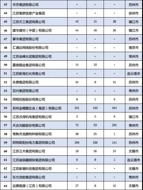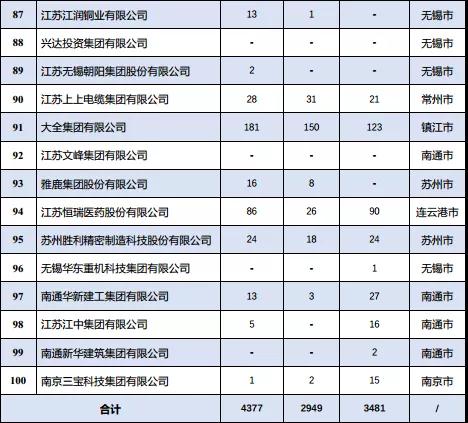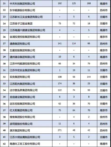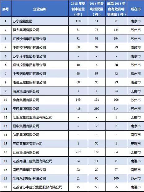 2019江蘇民營企業(yè)百強(qiáng)專利產(chǎn)出表