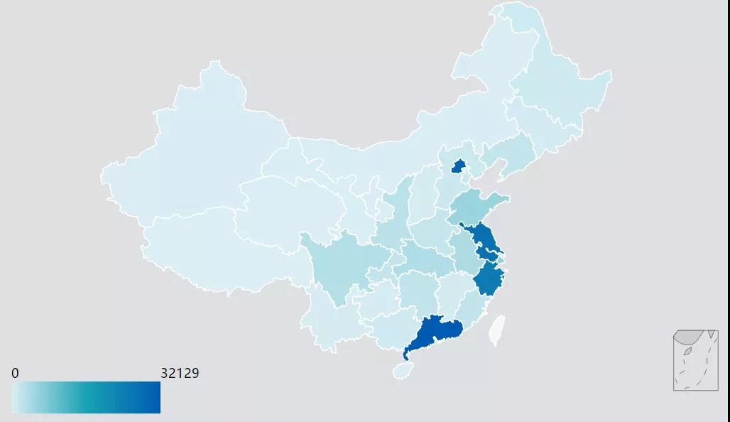 具體分析國別為中國的申請人在中國省市分布情況,發(fā)現(xiàn)2019上半年在中華人民共和國國家知識產(chǎn)權局公告授權的發(fā)明專利,在中國34個省級行政區(qū)均有分布。其中廣東省排名第一(32129件),北京市排名第二(28392件),江蘇省排名第三(21538件)。