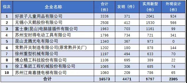 江蘇省有效專利量前十企業(yè)