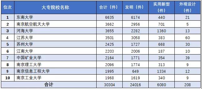 江蘇省有效專利量前十大專院校