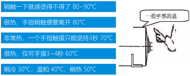 要點(diǎn)三、手感軸承外表面溫度一般以很熱(手摸3~4秒)為上限,即滾動軸承溫度上限一般為80℃。
