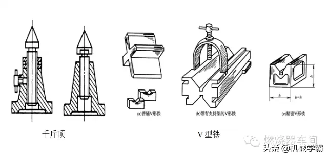 4.輔助工具,包括墊鐵、千斤頂、C形夾頭和夾鉗以及找中心劃圓時(shí)打入工件孔中的木 條、鉛條等。