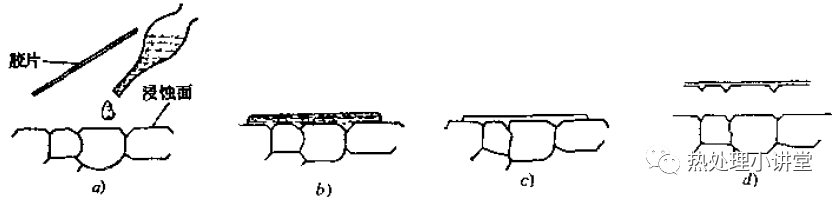 化學(xué)浸蝕是一個(gè)電化學(xué)溶解過程。在金屬中晶粒與晶粒之間、晶粒與晶界之間、各相間的物理化學(xué)性質(zhì)不同,自由能不同,在電解質(zhì)溶液中則具有不同的電極電位,可組成微電池。較低電位部分是微電池的陽極,溶解較快。溶解的地方則凹陷或沉積反應(yīng)產(chǎn)物而著色。在顯微鏡下觀察時(shí),光線在晶界處被散射,不能進(jìn)入物鏡而顯示出黑色晶界,而其它地方呈白色。