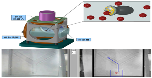 讓小機器人進入人體血管探測、去除癌變細胞、進行定點給藥一直是科學家的夢想。在這個夢想的激勵下,沈陽自動化所微納米研究團隊研制了微型機器人,包括光驅動仿細菌微型機器人及磁驅動微型機器人。這類微型機器人長度為500微米到1000微米之間,可在液體中進行三維游動,運動速度可達到5mm/s