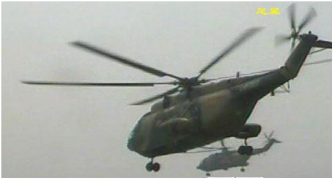 4.葉片數(shù)量:葉片數(shù)量往往與載重量大小相關(guān),常見(jiàn)有2,3,4,8 個(gè)葉片。例如米-8直升機(jī)有4個(gè)葉片。米-28有5個(gè)葉片。米-26直升機(jī)的旋翼有8個(gè)葉片,尾槳有5個(gè)葉片。2008年5月26日,一架紅色米-26直升機(jī)吊裝了一臺(tái)重約13.2噸的重型挖掘機(jī)前往唐家山堰塞湖壩體。圖4為執(zhí)行該項(xiàng)任務(wù)的米-26直升機(jī)照片。