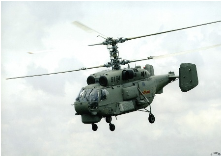 2.雙旋翼直升機(jī): 雙旋翼直升機(jī)具有兩個(gè)旋翼。兩個(gè)旋翼的排列有如下三個(gè)情況:①縱列式:兩個(gè)旋翼前后縱向排列,旋轉(zhuǎn)方向相反。例如,美國(guó)波音公司制造的CH-47“支努干”運(yùn)輸直升機(jī)。 ②橫列式:兩個(gè)旋翼左右橫向排列,旋翼軸間隔較遠(yuǎn),旋轉(zhuǎn)方向相反。比如,前蘇聯(lián)的Mi-12直升機(jī)。 ③共軸式:兩個(gè)旋翼上下排列,在同一個(gè)轉(zhuǎn)軸線上,互成反向旋轉(zhuǎn)。例如,前蘇聯(lián)的卡-50武裝直升機(jī)。(請(qǐng)見(jiàn)圖7的共軸式雙旋翼直升機(jī)圖片)