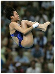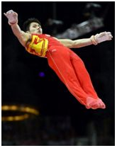 剛體的轉(zhuǎn)動(dòng)慣量問(wèn)題,和我們身邊的許多活動(dòng)息息相關(guān),這里以競(jìng)技運(yùn)動(dòng)為例。體操和跳水運(yùn)動(dòng)員在做空翻或翻騰動(dòng)作時(shí),其身體的姿勢(shì)(形態(tài))決定了其動(dòng)作的難度,裁判打分時(shí)給不同的難度系數(shù)。例如圖9a 所示的跳水女運(yùn)動(dòng)員所做的團(tuán)身空翻(或向后翻騰),她的身體曲折成三段,各部分身體重量最靠近于重心。于是,其轉(zhuǎn)動(dòng)慣量最小,可以使翻騰速度最快。所以,在10米臺(tái)跳水做翻騰三周半的動(dòng)作時(shí)都多采用團(tuán)身翻騰。圖9b所示的則是曲體空翻(或向后翻騰),她的身體呈曲兩段折疊,其轉(zhuǎn)動(dòng)慣量比團(tuán)身情況稍大。難度系也較大。最難做的是圖9c 所示的體操運(yùn)動(dòng)員所做的直體空翻。由于直體的轉(zhuǎn)動(dòng)慣量最大,空翻最費(fèi)力;難度系數(shù)最大。同時(shí)由于姿態(tài)優(yōu)美,打分較高。