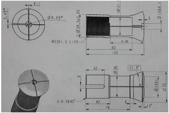 2、與產(chǎn)品內(nèi)孔定位接觸的外圓在制作時需留單邊0.5mm的余量,最后裝到儀表車床上在精車到尺寸,防止淬火過程導(dǎo)致的變形和偏心;