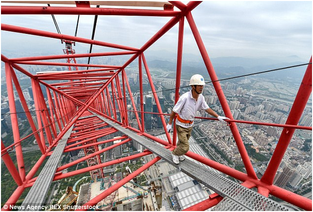 在地面建筑還沒有起來的時候,塔吊司機需要通過塔吊標準節(jié)內部的樓梯上上下下。在地上主體形成后,塔吊司機可以搭乘到樓層后,再爬到駕駛室里。