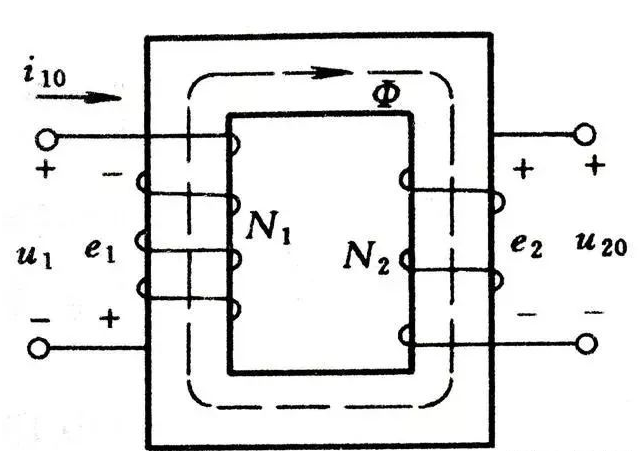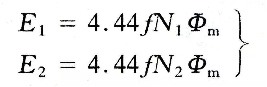若略去漏磁通的影響,不考慮繞組上電阻的壓降,則可認為一、二次繞組上電動勢的有效值近似等于一、二次繞組上電壓的有效值,即: