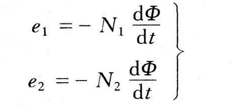 磁通勢【N1i10】在鐵心中產(chǎn)生的主磁通【Φ】通過閉合鐵心,既穿過一次繞組,也穿過二次繞組,于是在一、二次繞組中分別感應(yīng)出電動勢【e1】【e2】當e1、e2與Φ的參考方向之間符合右手螺旋定則時,由法拉第電磁感應(yīng)定律可得