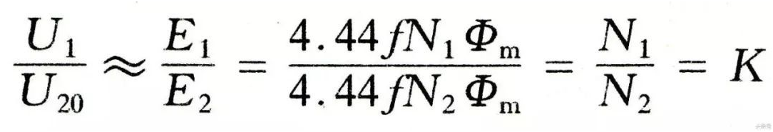 從上式可見,變壓器空載運行時,一、二次繞組上電壓的比值等于兩者的匝數(shù)比,這個比值【K】稱為變壓器的變壓比或變比。
