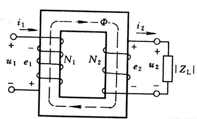 如果變壓器的二次繞組接上負載,則在二次繞組感應(yīng)電動勢【e2】的作用下,將產(chǎn)生二次繞組電流【i2】。這時,一次繞組的電流由【i10】增大為【i1】,二次側(cè)的電流【i2】越大,一次側(cè)的電流也越大。