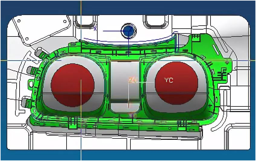 6. 有此產(chǎn)品的碰穿位,如果面積比較大,邊緣留10-15mm,中間紅色避空0.15mm,方便鉗工配模具。