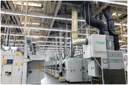廢氣分離凈化單元采用的是康斐爾工業(yè)除塵設(shè)備??奠碃栕鳛槿蛑母咂焚|(zhì)潔凈空氣解決方案的系統(tǒng)供應(yīng)商,自創(chuàng)立起就將可持續(xù)發(fā)展作為企業(yè)的第一要務(wù),一直致力于幫助為人類的生活環(huán)境提供更潔凈的空氣,保證工作環(huán)境的操作人員健康、工藝過程以及環(huán)境安全??奠碃栣槍庸C(jī)床干式和濕式加工的不同工藝特點,分別配備了濕式除塵和乳化液霧/油霧凈化器,并將處理后的潔凈氣體輸送到熱回收單元經(jīng)過與來自外界的新風(fēng)進(jìn)行熱交換能量回收后排出室外。