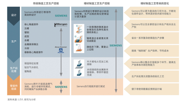 通過(guò)金屬打印技術(shù)的應(yīng)用和生產(chǎn)環(huán)節(jié)的內(nèi)部整合,Siemens主要獲益如下:
