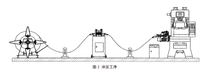 在金屬零件加工的過程中,一旦出現(xiàn)需要同時加工的零件較多的情況下,只安裝一臺精密壓力機,顯然已經(jīng)無法滿足生產(chǎn)的需要。因此,應(yīng)該使用伺服驅(qū)動搬送裝置將短時間內(nèi)無法沖壓的金屬零件運送到制定的位置,對送料裝置潘松來的材料進行一一拾取,送到主機處進行逐一加工,不僅可以環(huán)節(jié)精密壓力機所承受的壓力,也可以提高金屬零件加工的速度,直到金屬零件加工完不,沖壓的全部工序也就得以完成(見圖2)。