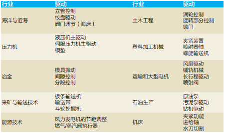 上述主要應(yīng)用考慮了以下驅(qū)動類型: