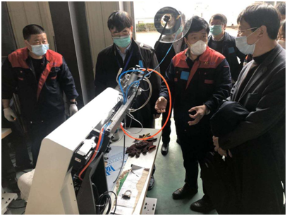 蘇州信能精密機(jī)械有限公司技術(shù)人員爭分奪秒,歷時(shí)10天研發(fā)出醫(yī)用防護(hù)服緊缺設(shè)備壓條機(jī),于2月23號(hào)交付客戶生產(chǎn),2月24日國務(wù)院應(yīng)對新型冠狀病毒肺炎聯(lián)防聯(lián)控機(jī)制駐蘇州督導(dǎo)組組長徐春榮司長來蘇州信能調(diào)研指導(dǎo)工作。