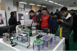 本次研討會后,參會代表一行在常州信息職業(yè)技術(shù)學(xué)院姚立波教授的帶領(lǐng)下,參觀了工業(yè)機(jī)器人實訓(xùn)基地。由江蘇哈工海渡工業(yè)機(jī)器人有限公司自主研發(fā)的Delta并聯(lián)機(jī)器人實驗臺引起了參會代表的關(guān)注和興趣。