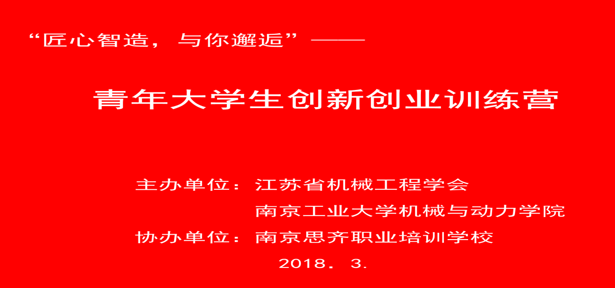 3月30日,省機械工程學會與機械與動力工程學院聯(lián)合舉辦的“匠心智造,與你邂逅”青年大學生創(chuàng)新創(chuàng)業(yè)訓練營在江浦校區(qū)正式開營。
