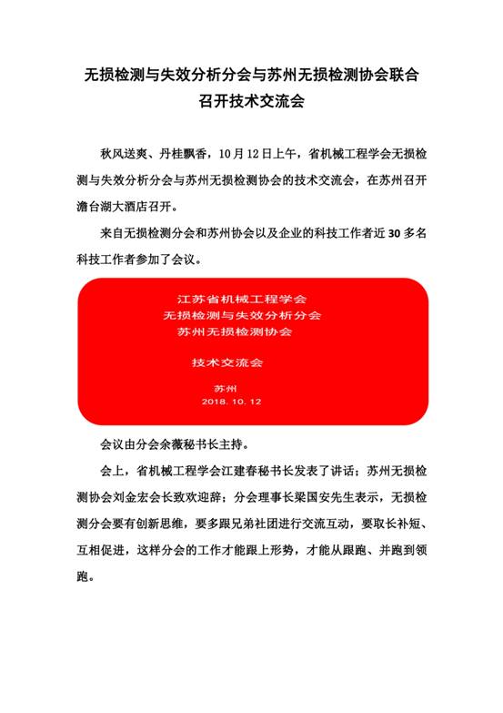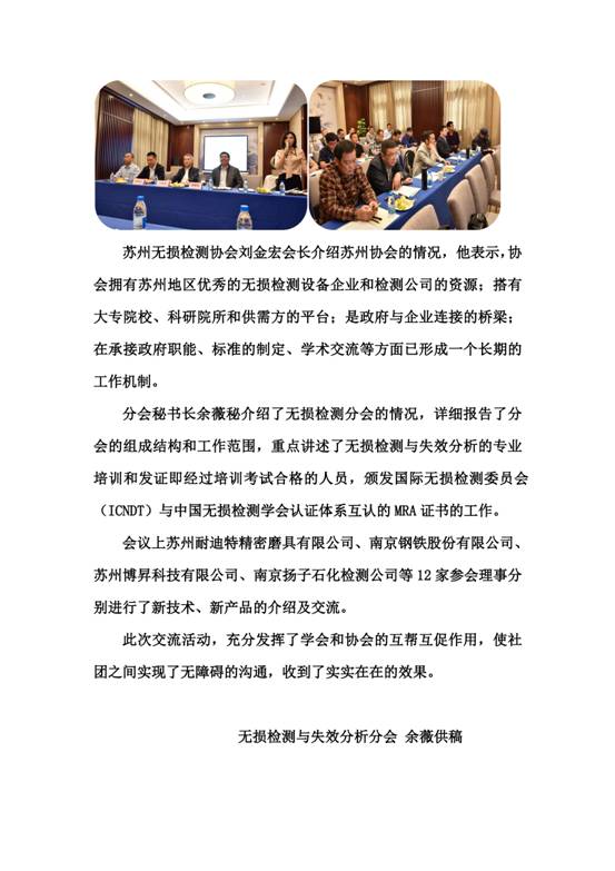無損檢測與失效分析分會與蘇州無損檢測協(xié)會聯(lián)合召開技術(shù)交流會