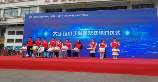 科學(xué)普及,從娃娃抓起,啟動(dòng)儀式上,十名南京工程學(xué)院大學(xué)生志愿者為博學(xué)苑幼兒園小朋友贈(zèng)送科教盒子和科普?qǐng)D書。