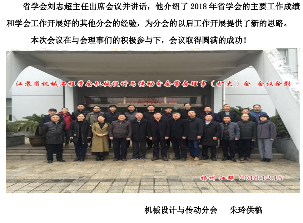 江蘇省機械工程學(xué)會機械設(shè)計與傳動分會召開第七屆一次常務(wù)理事(擴大)會暨學(xué)術(shù)研討會