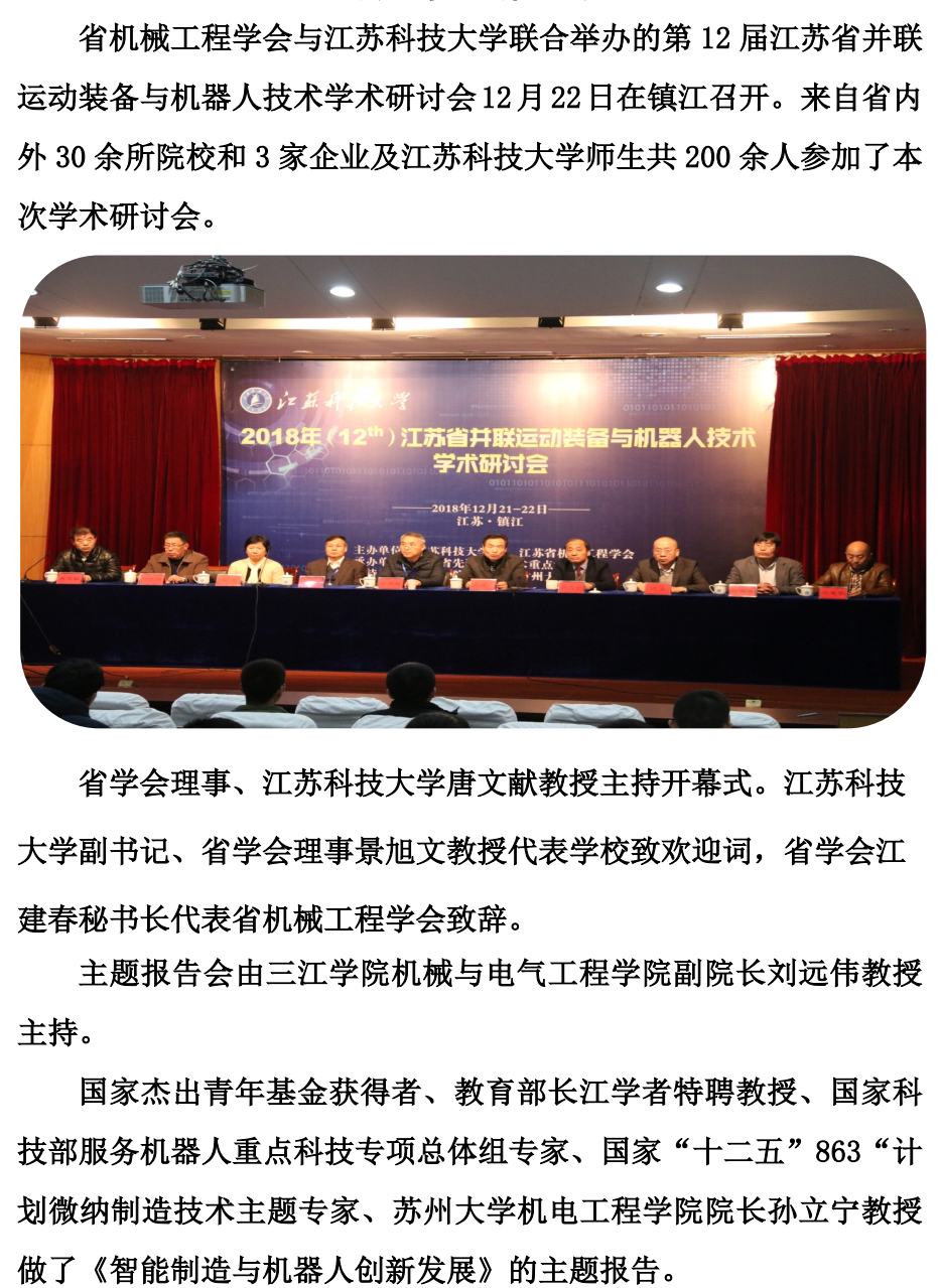省機(jī)械工程學(xué)會(huì)舉辦第12屆并聯(lián)運(yùn)動(dòng)裝備與機(jī)器人技術(shù)學(xué)術(shù)研討會(huì)