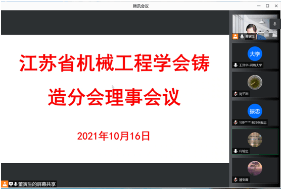 省機(jī)械工程學(xué)會(huì)鑄造分會(huì)于2021年10月16日在線召開理事會(huì)議,二十余位理事參加了會(huì)議。會(huì)議由分會(huì)秘書長董寅生教授主持,鑄造分會(huì)理事長王澤華教授做了工作報(bào)告。