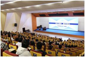 善于轉(zhuǎn)化”的勵志分享報告。學(xué)校教師、輔導(dǎo)員及學(xué)生代表等200余人聆聽了院士報告會。院士報告會由黃傳輝院長主持。