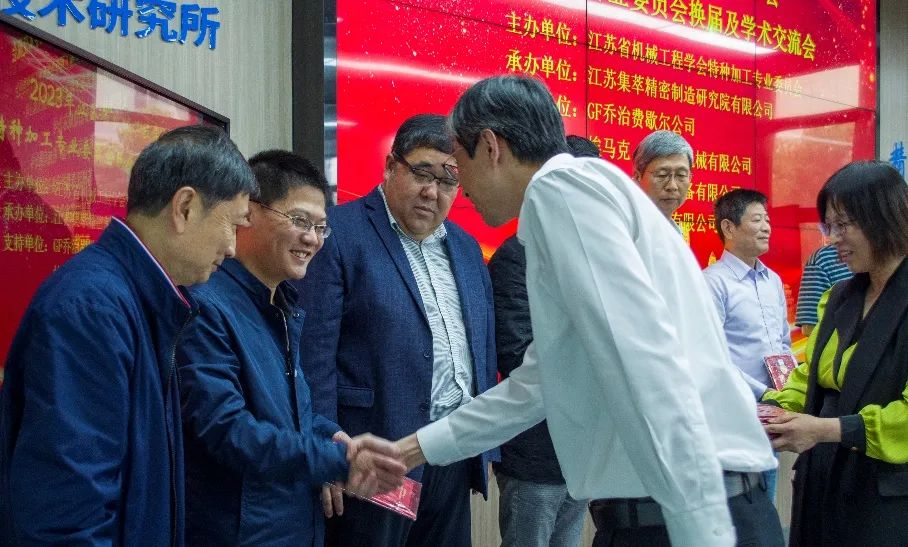 隨后,江蘇省機械工程學(xué)會秘書長徐愛民先生宣讀了江蘇省機械工程學(xué)會關(guān)于《江蘇省機械工程學(xué)會特種加工專業(yè)委員會換屆的批復(fù)》。中國機械工程學(xué)會特種加工分會副主任委員、蘇州電加工機床有限公司董事長吳強先生為新一屆特種加工專委會主任委員、副主任委員、秘書長及副秘書長頒發(fā)了聘書。
