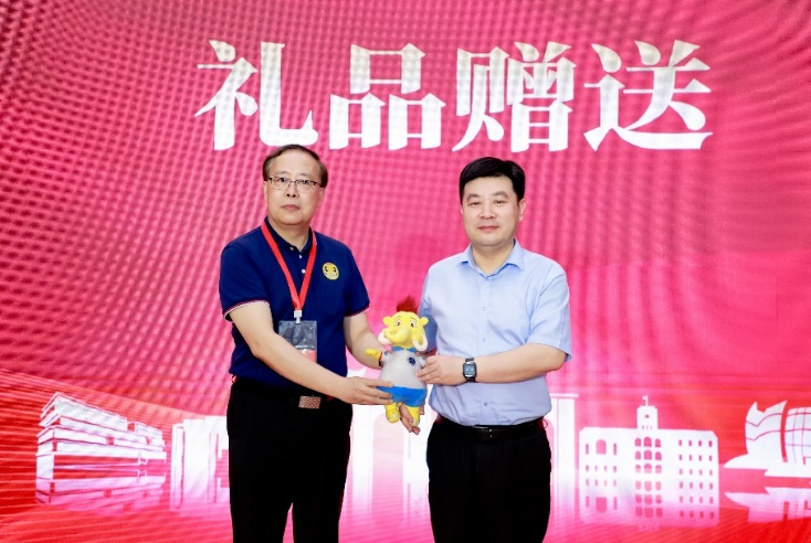 蘇州大學教務處處長方亮代表大賽承辦方接受“金象”吉祥物