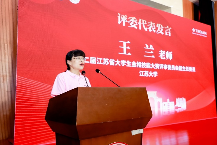 大賽評審委員會副主任委員、江蘇大學王蘭代表大賽評審委員會向全體師生宣誓,認真履行評審職責,確保公開、公正、公平、嚴格、規(guī)范,保障大賽順利進行。同時對參賽選手寄予厚望,祝愿參賽選手在比賽中取得優(yōu)異成績。