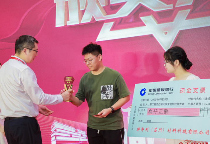 大賽同時評選出最佳個人單項獎,冠名贊助商特魯利(蘇州)材料科技有限公司董事長張理綱向獲得最佳個人單項獎的選手頒發(fā)了獎杯和現金獎勵。