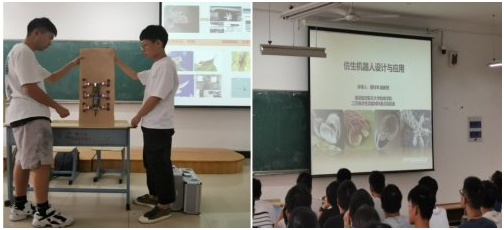 科普活動(dòng)從仿生學(xué)展開(kāi),南京航天航空大學(xué)姬科舉博士介紹了仿生機(jī)器人的原理、分類、功能以及仿生機(jī)器人的國(guó)內(nèi)外研究現(xiàn)狀和發(fā)展趨勢(shì),并專門(mén)展示了南京航空航天大學(xué)仿生所的最新研究成果——壁虎仿生機(jī)器人,引起了全體師生的極大興趣,現(xiàn)場(chǎng)氣氛活躍,師生交流融洽,開(kāi)闊了學(xué)生的視野。