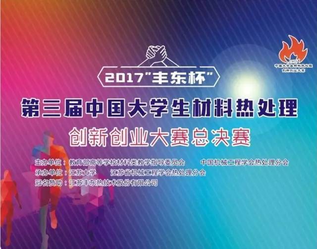 7月21日,由教育部高等學(xué)校材料類教學(xué)指導(dǎo)委員會、中國機(jī)械工程學(xué)會熱處理分會主辦,江蘇大學(xué)、江蘇省機(jī)械工程學(xué)會熱處理分會共同承辦的2017“豐東杯”第三屆中國大學(xué)生材料熱處理創(chuàng)新創(chuàng)業(yè)大賽總決賽在江蘇大學(xué)隆重舉行。來自清華大學(xué)、南京理工大學(xué)、武漢理工大學(xué)、中國礦業(yè)大學(xué)、江蘇大學(xué)、江蘇豐東熱處理及表面改性工程技術(shù)研究有限公司等24個(gè)高校、企業(yè)的30支代表隊(duì)參加了本次總決賽。