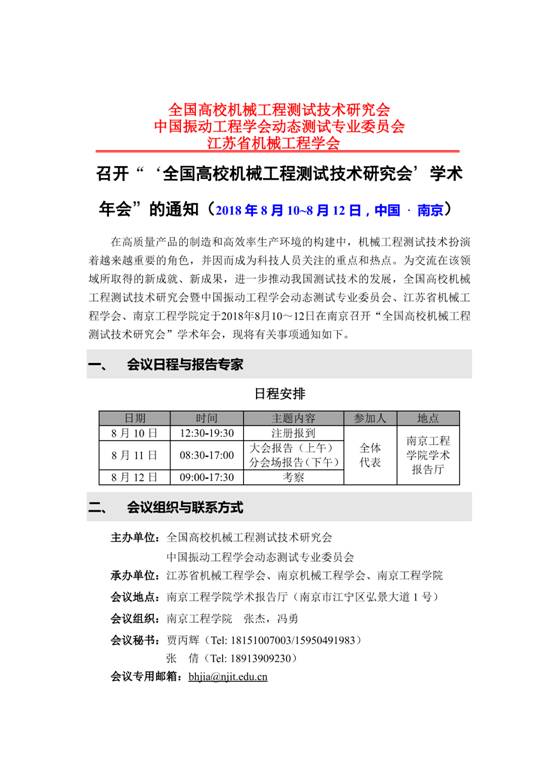 全國(guó)高校機(jī)械工程測(cè)試技術(shù)研究會(huì) -- 學(xué)術(shù)年會(huì)通知