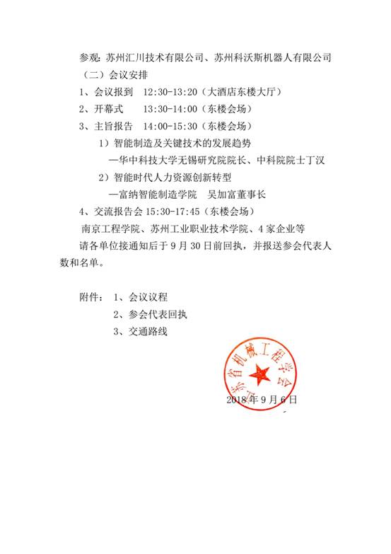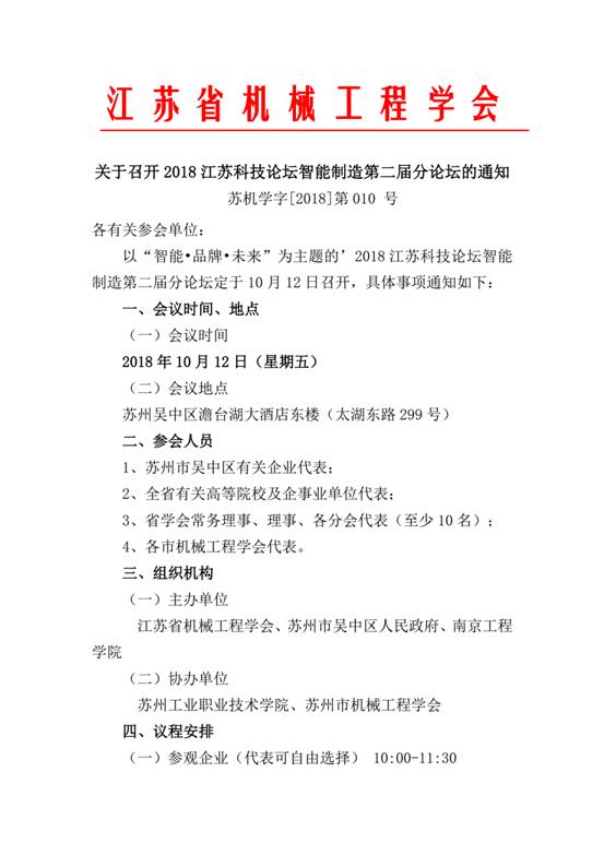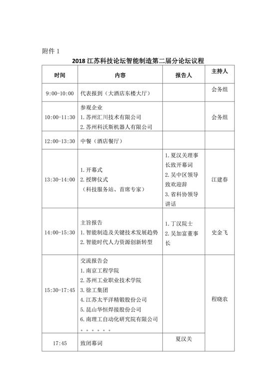 關(guān)于召開 2018 江蘇科技論壇智能制造第二屆分論壇的通知