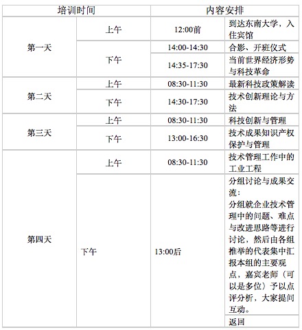 培訓結束,經(jīng)考核合格學員由東南大學繼續(xù)教育學院頒發(fā)“江蘇省企業(yè)技術管理人員創(chuàng)新能力建設與綜合素質(zhì)提升專題培訓”結業(yè)證書。