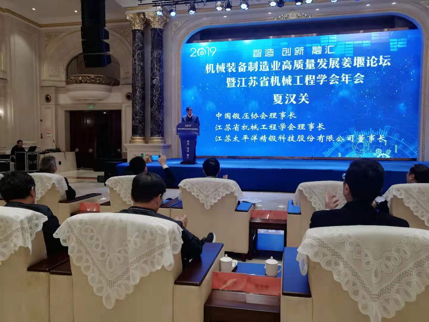 11月16日-17日,以“智造﹒創(chuàng)新﹒融匯”為主題的“2019機械裝備制造業(yè)高質(zhì)量發(fā)展姜堰論壇”在美麗而充滿活力的現(xiàn)代新型城市泰州姜堰盛大開幕。論壇由中國機械工程學(xué)會、中國鍛壓協(xié)會、江蘇省科學(xué)技術(shù)協(xié)會主辦,泰州市姜堰市區(qū)人民政府、泰州市科學(xué)技術(shù)協(xié)會、江蘇省機械工程學(xué)會承辦,姜堰區(qū)委組織部、姜堰區(qū)科技鎮(zhèn)長團、姜堰區(qū)科技局、姜堰區(qū)工信局、姜堰區(qū)人社局、姜堰區(qū)科學(xué)技術(shù)協(xié)會、江蘇太平洋精鍛科技股份有限公司協(xié)辦。歷數(shù)主辦、承辦、協(xié)辦論壇的13家單位,不但有國家和省級的行業(yè)科技社團、國家級的專業(yè)協(xié)助組織、省市區(qū)的科學(xué)技術(shù)協(xié)會、區(qū)級政府有關(guān)部門,還有行業(yè)中的領(lǐng)銜企業(yè)。如此眾多辦會單位、聯(lián)動協(xié)辦企業(yè)、較高規(guī)模檔次、盛大熱烈場面,這在江蘇境內(nèi)舉辦的類似論壇中實屬罕見。論壇標(biāo)明的“融匯”主題,內(nèi)涵豐富、特質(zhì)鮮明、名歸實至,我們從中看到了行業(yè)高質(zhì)量發(fā)展的合力融匯。
