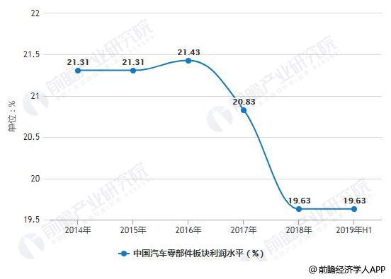 2014-2019年h1中國汽車零部件板塊利潤水平統(tǒng)計(jì)情況