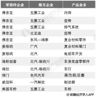 2017年以來外資零部件企業(yè)與中國車企成立的合資公司統(tǒng)計(jì)情況