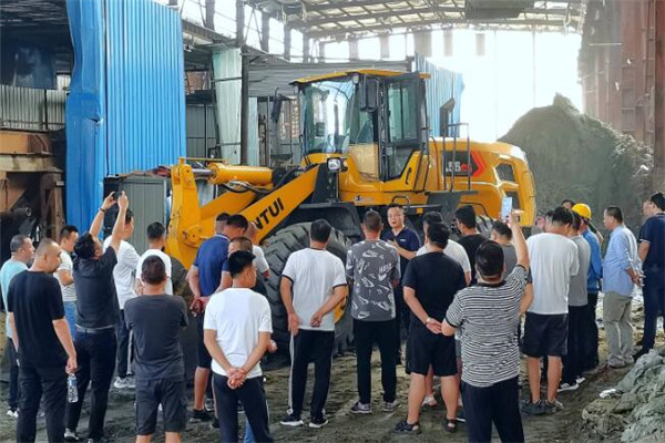 但俗話說“是騾子是馬拉出來溜溜”,許多客戶在聽了講解后都迫不及待的提出了試乘試駕要求,都想一試身手,來自邯鄲的岳師傅身手敏捷的登上駕駛室,開啟了試機(jī)體驗,只見他熟練的操作著鏟車,加足油門,一鏟下去鏟出滿滿一鏟斗硫酸礦粉,將鏟斗舉高后,沖著旁邊的人喊“這一鏟8噸多重啊!”,在場的客戶聽聞后,都紛紛為山推裝載機(jī)的鏟裝能力點贊!隨后岳師傅在完成了幾個鏟裝作業(yè)循環(huán)后,意猶未盡的下車與其他客戶交流“這車挺好,有勁兒,動作流暢,操作起來得心應(yīng)手!”。