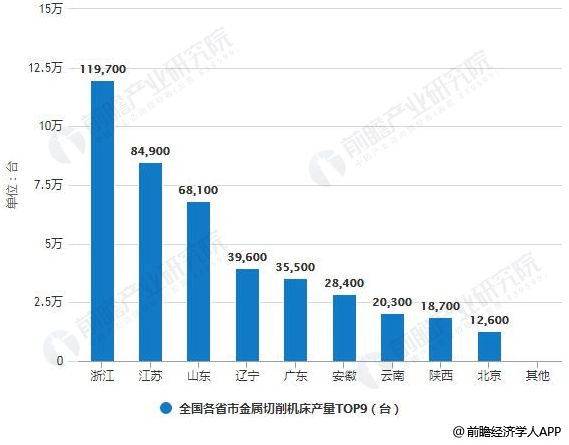 從2018年我國金屬切削機(jī)床區(qū)域分布情況來看,浙江省是我國金屬切削機(jī)床生產(chǎn)第一大省,全年的生產(chǎn)量為11.97萬臺,占全國總產(chǎn)量的24.5%。