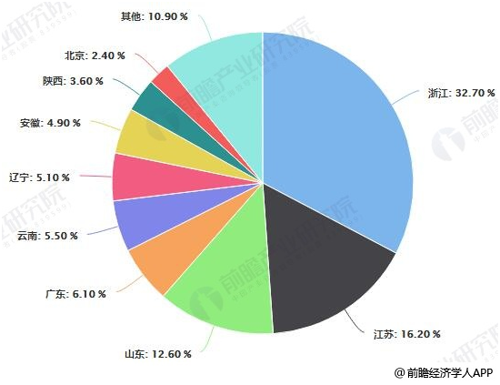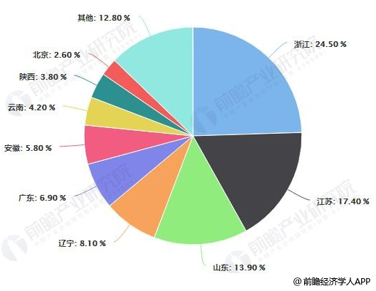 累計(jì)產(chǎn)量超過10000臺的省市共9個,除浙江外,還包括江蘇(8.49臺,占比17.4%)、山東(6.81萬臺,占比13.9%)、遼寧(3.96萬臺,占比8.1%)、廣東(3.35萬臺,占比6.9%)、安徽(2.84萬臺,占比5.8%)、云南(2.03萬臺,占比4.2%)和陜西(1.87萬臺,占比3.8%)。
